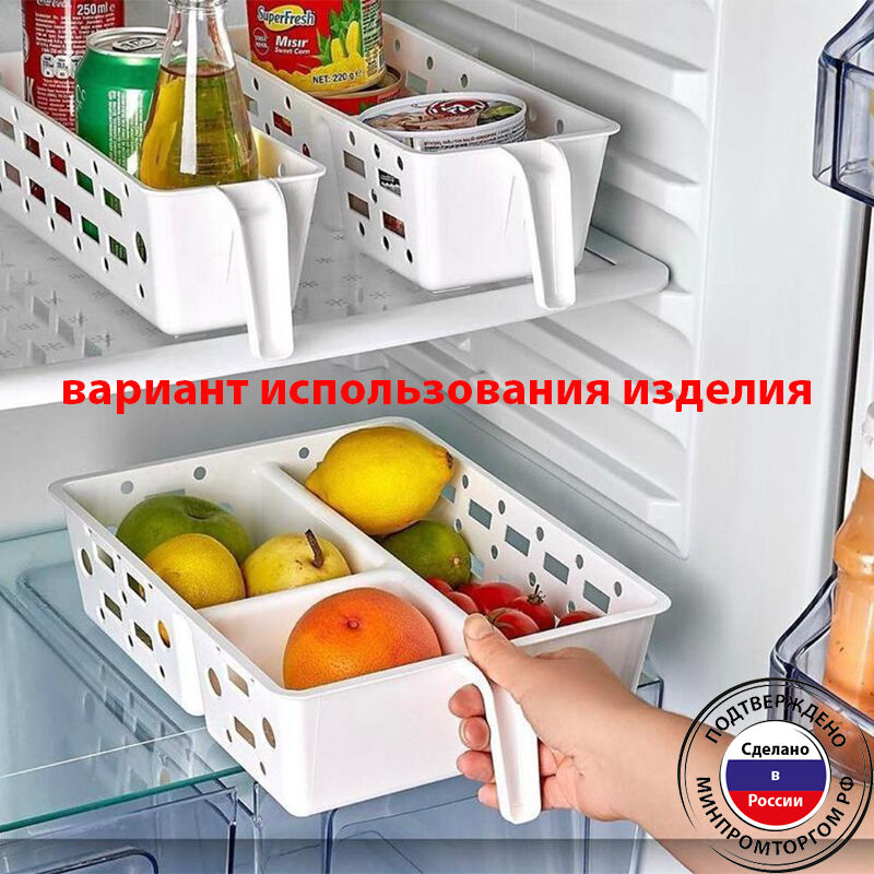 Поможет рационально организовать пространство в доме, на кухне, в холодильнике и сэкономит место. Благодаря ручке на органайзере, его удобно переносить или снимать с полки. Наличие перфорации на стенках создает дополнительную вентиляцию содержимого и тем самым предотвращает развитие бактерий и грибков. Органайзер производится из безопасного высококачественного полипропилена. Данные органайзеры вы всегда можете приобрести в нашем магазине polimerbyt-shop.ru