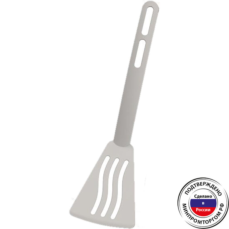 Кухонная лопатка - одна из незаменимых помощниц на вашей на кухне. Изделие выполнено из жаропрочного и полностью безопасного пластика, который не впитывает запахи продуктов и жир. Масло и жир останутся в сковороде благодаря наличию прорезей в лопатке. Лопатку можно хранить в шкафу или в подвешенном виде. Данные лопатки вы всегда можете приобрести в нашем магазине polimerbyt-shop.ru