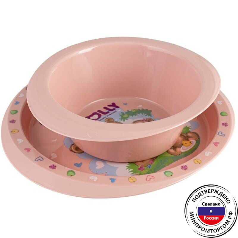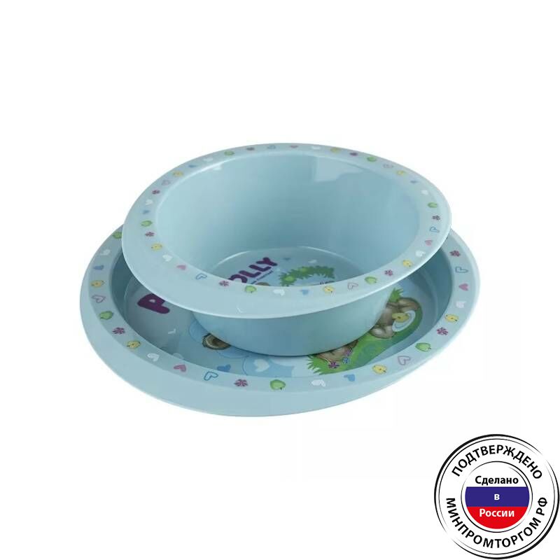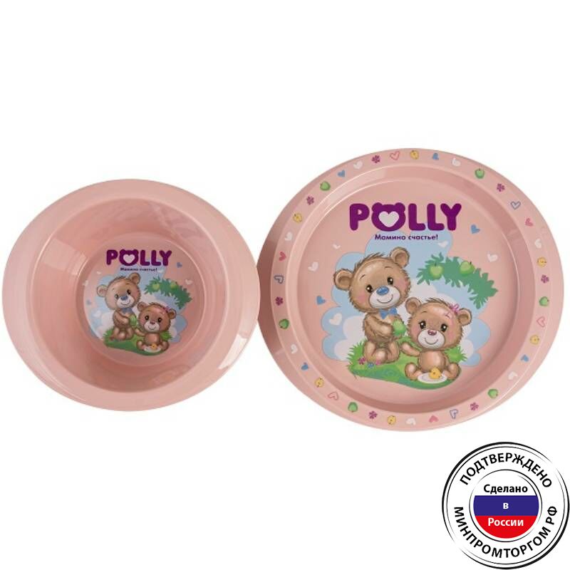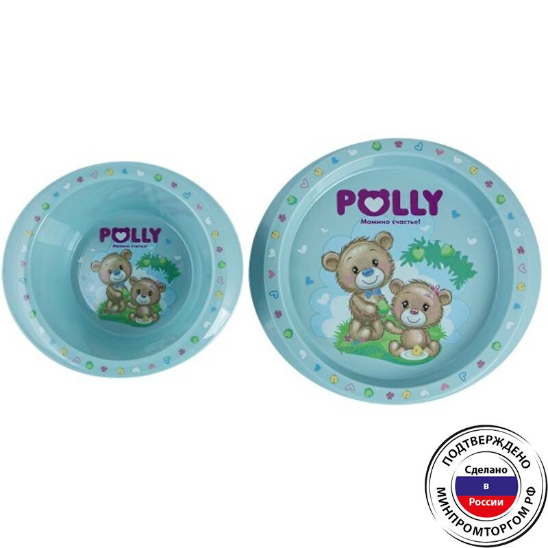 Полимербыт 38923 Набор детской посуды «Polly» Мамино счастье! (тарелка плоская + тарелка глубокая 0,6 л.)